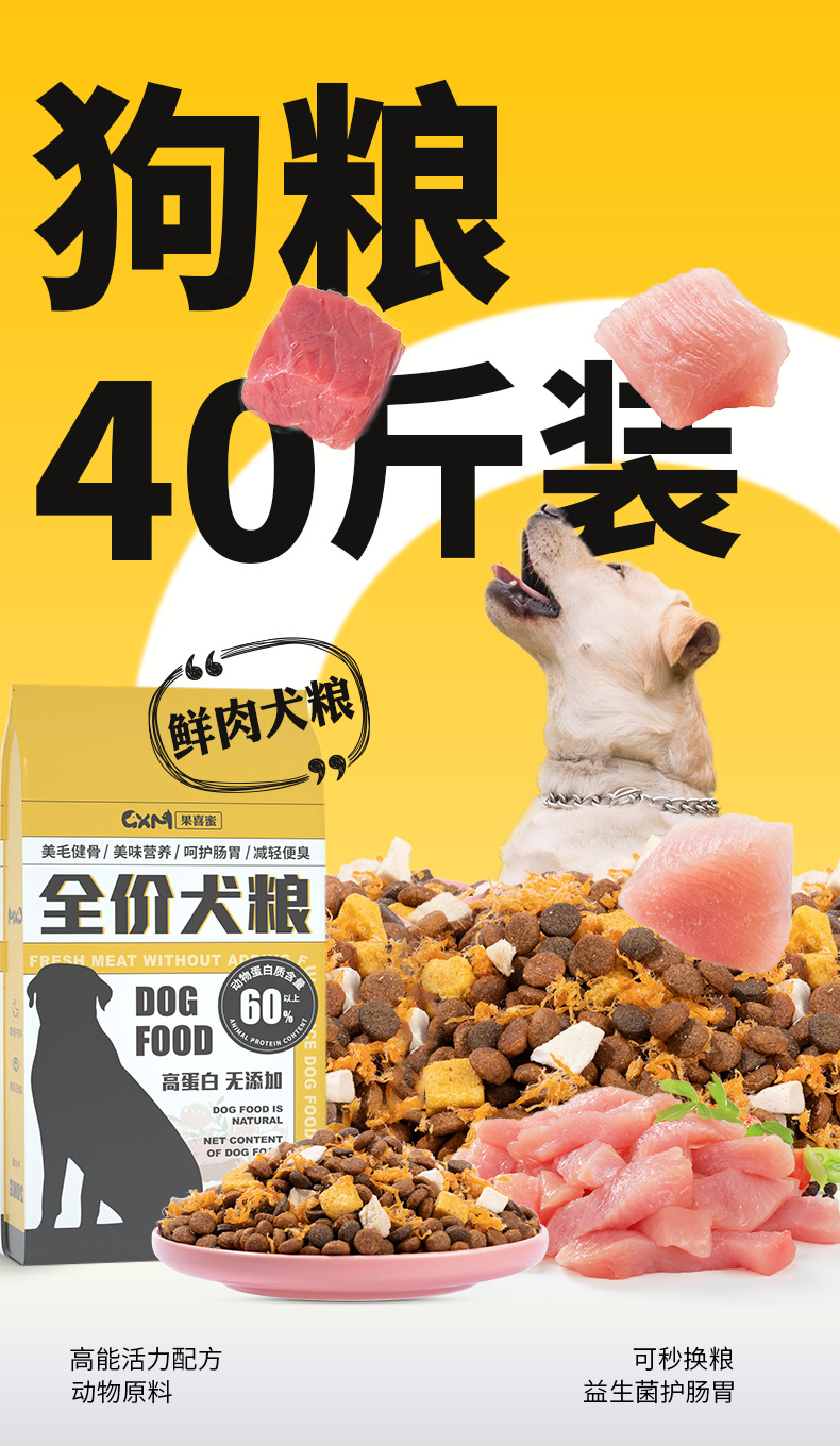 狗粮40斤装成犬大型犬专用金毛拉布拉多边牧通用全价大包装冻干粮