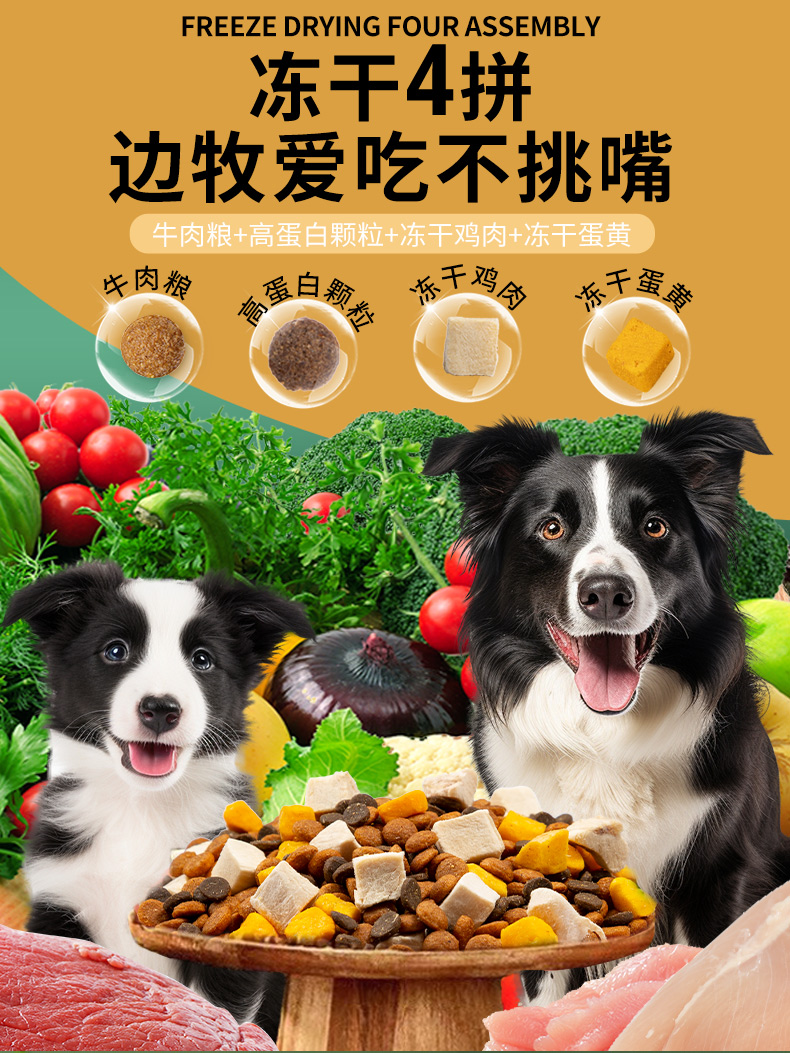 边牧专用狗粮20斤装幼犬大型犬成犬小边境牧羊犬美毛补钙冻干10斤