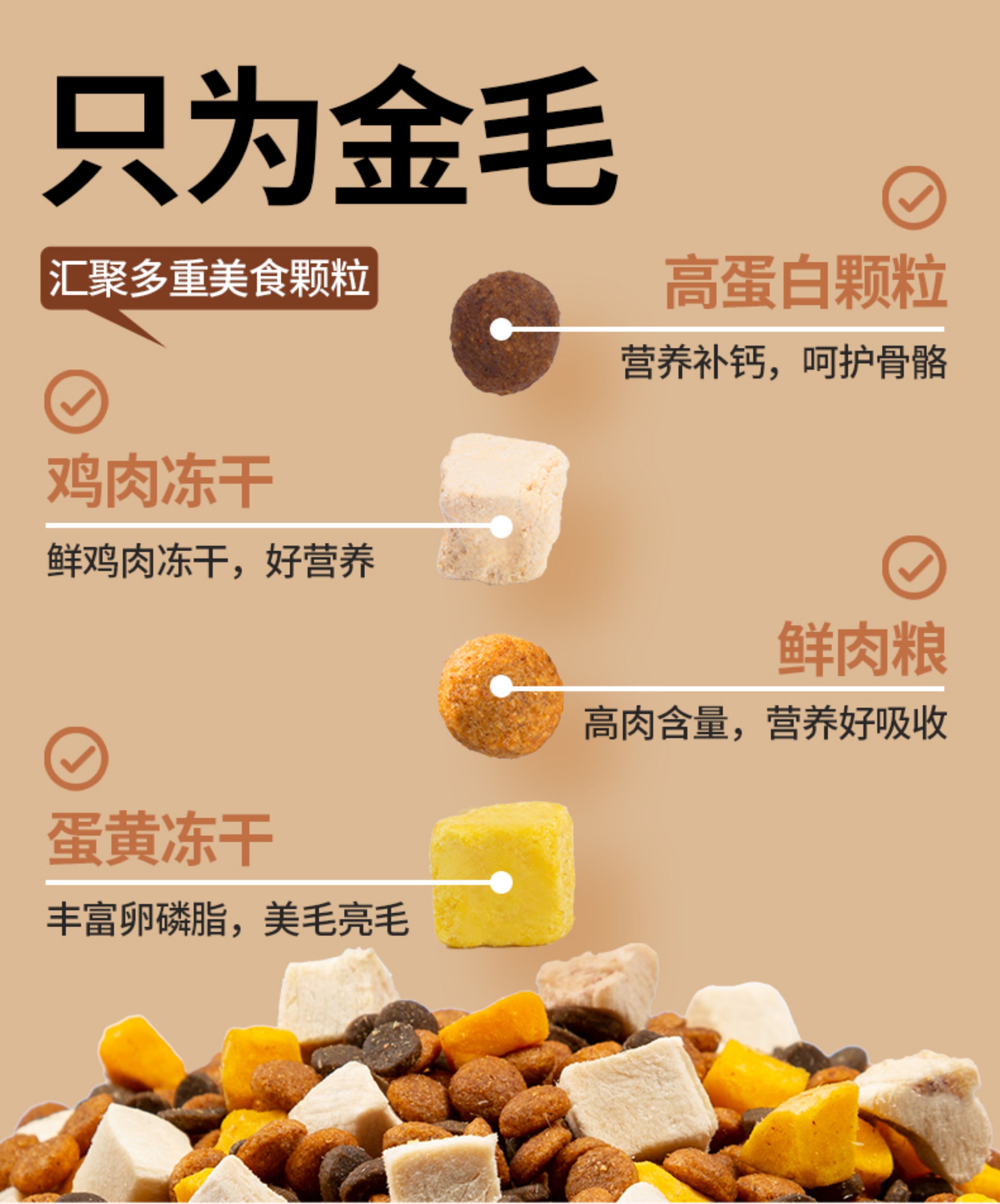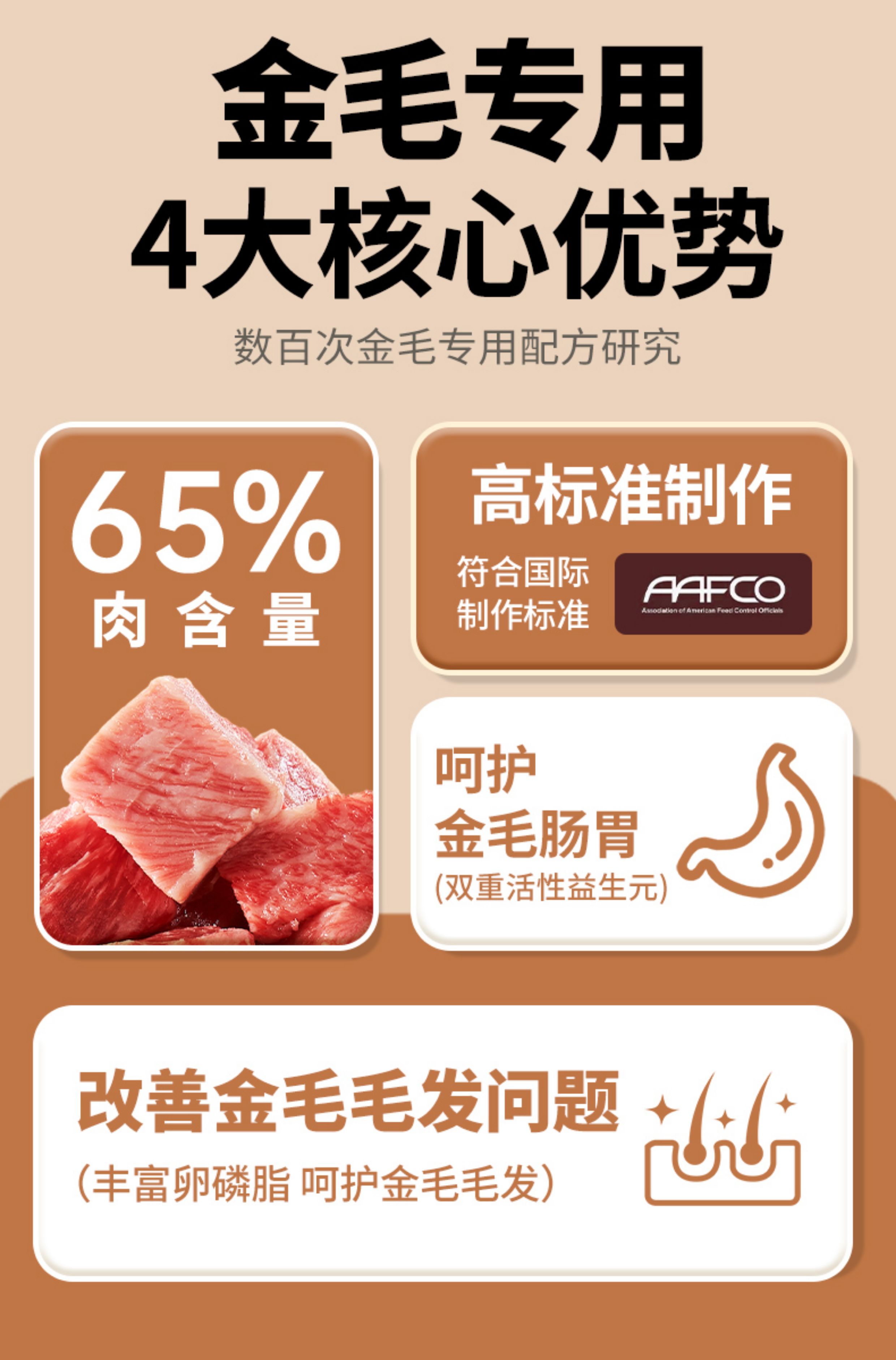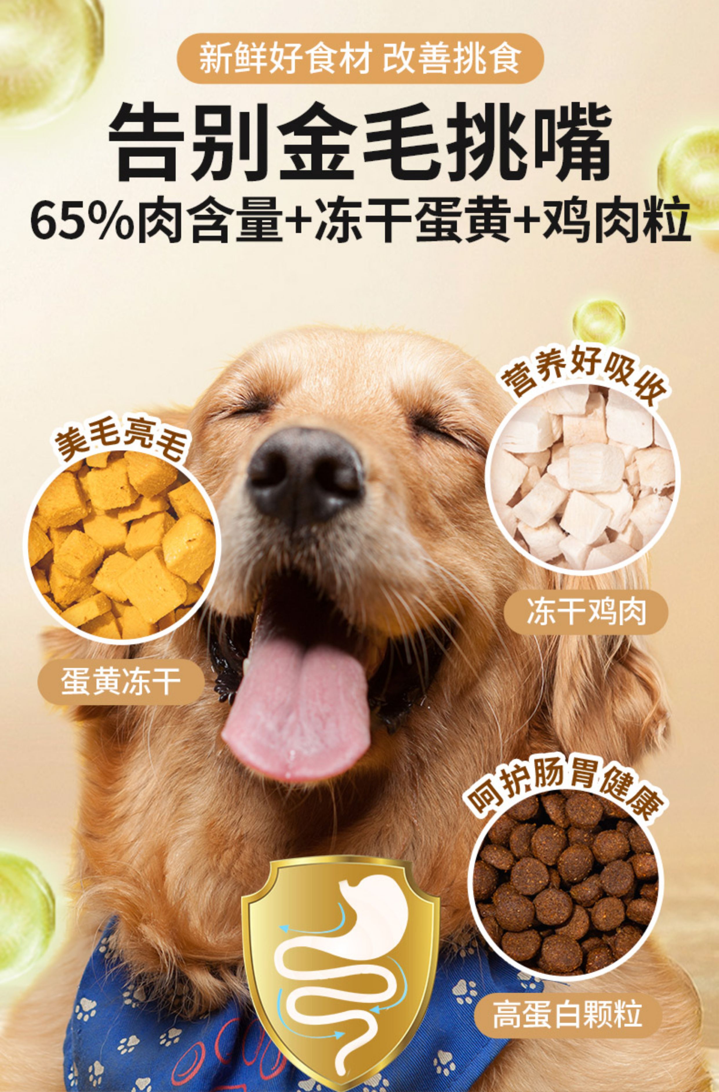 金毛狗粮专用10斤装小幼犬呵护肠胃成犬美毛中大型犬全价冻干犬粮