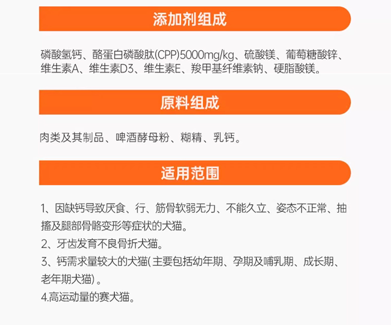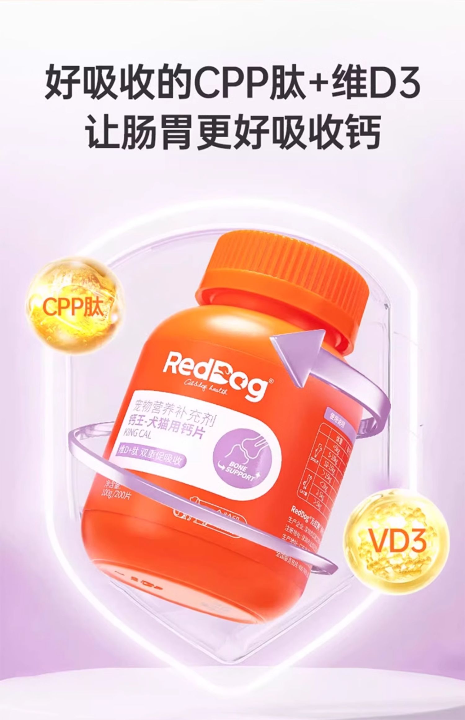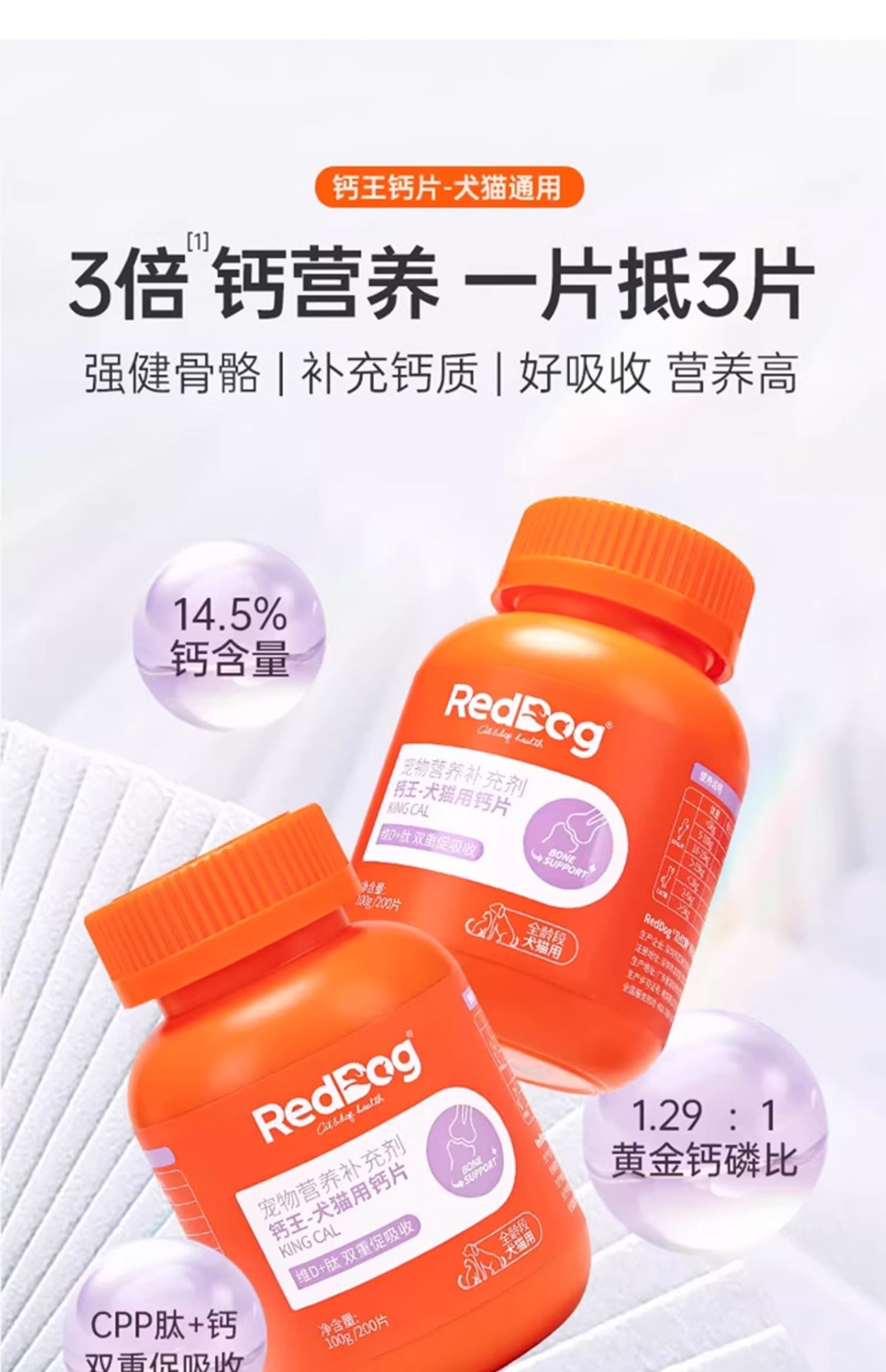 RedDog红狗钙片猫咪狗狗专用宠物骨质疏松强健骨骼补钙营养补充片