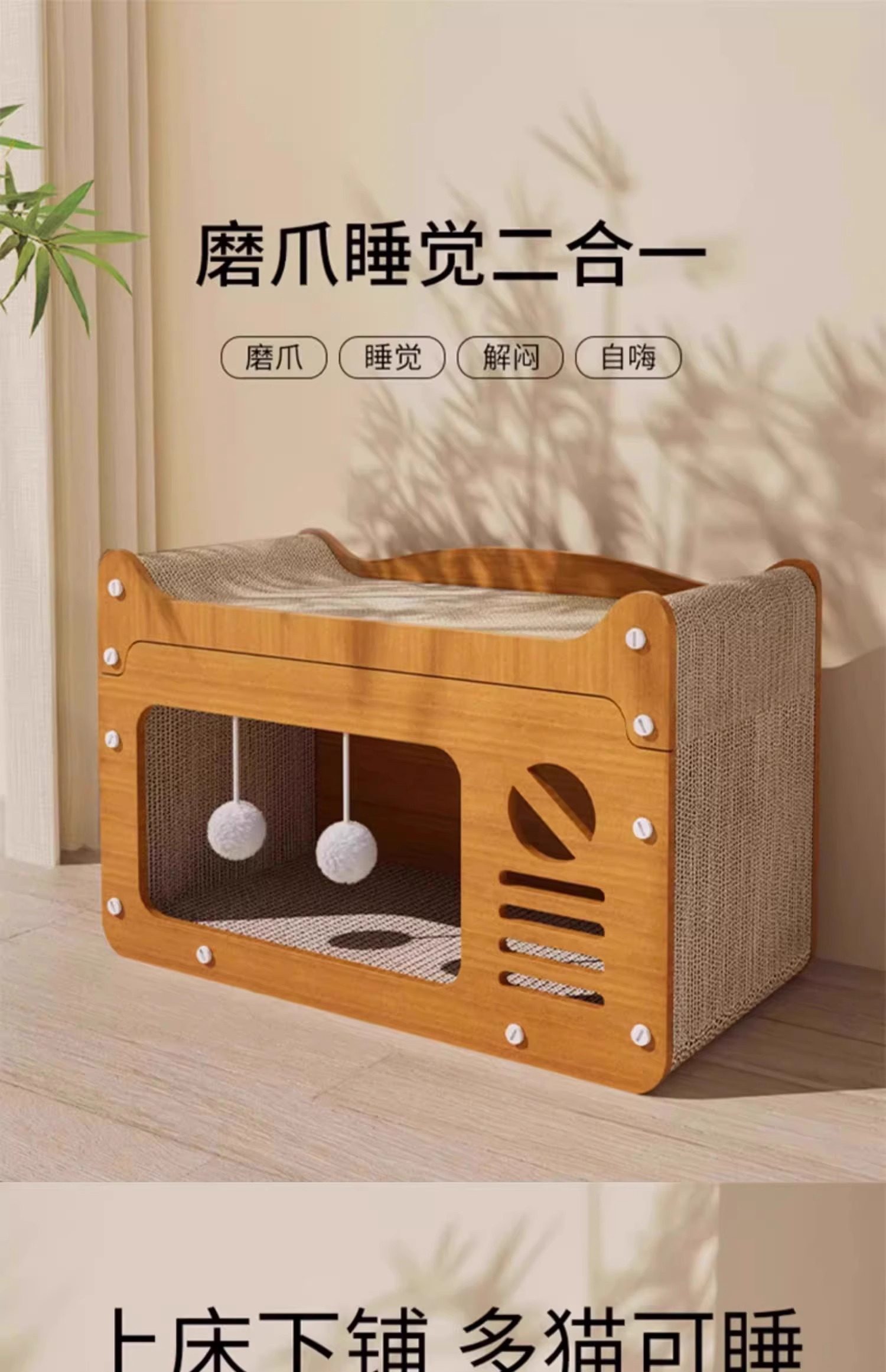 猫抓板小猫咪窝耐磨不易掉屑四季通用一体立式屋瓦楞纸爪爬架玩具