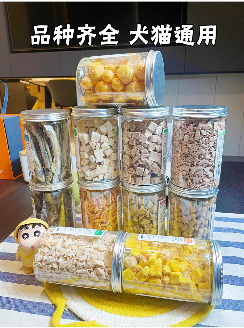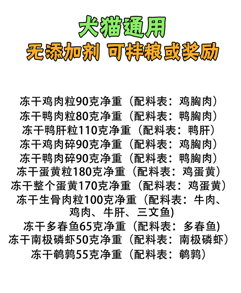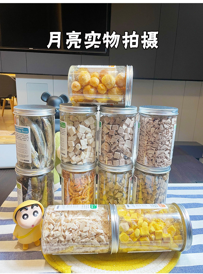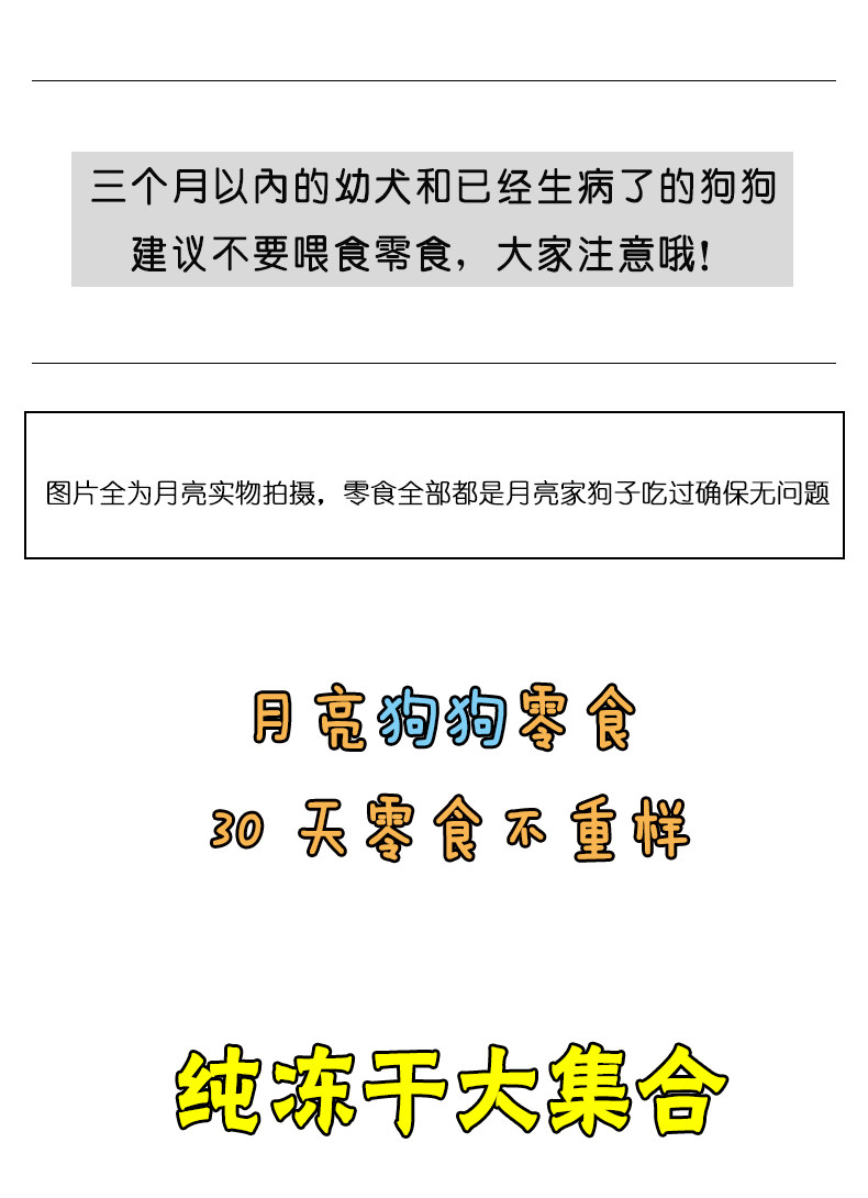月亮狗狗零食纯冻干鸡肉鸭肉粒蛋黄粒鸭肝磷虾多春鱼鹌鹑猫咪拌粮