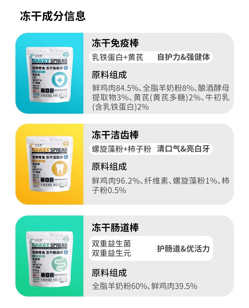 小袋内有三小包独立包装的冻干,大袋内无冻干,只有粮食颗粒。